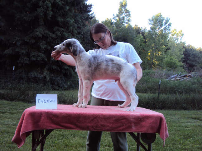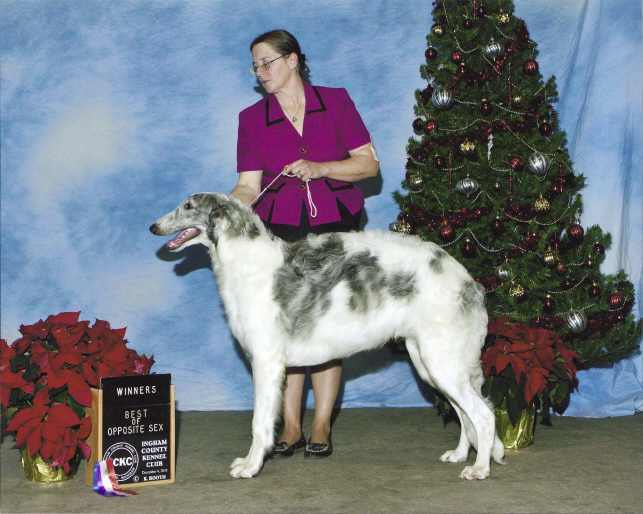 Illya pictured above 12/4/10 after going WD for his 1st 2 points at the Ingham County Kennel Club in Lansing, MI. This was his VERY first show!![]()