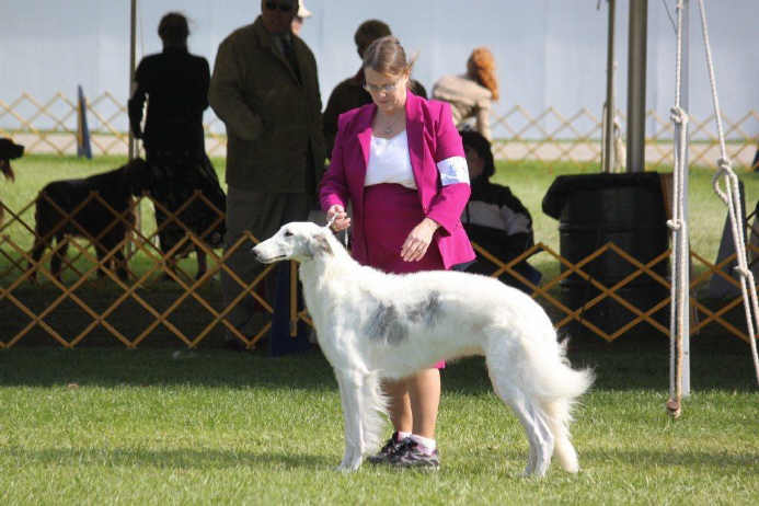 Simone was Select bitch at Ann Arbor KC 7/8/12 under Judge: Mr. Bo Bengtson. She was shown by Justine Spiers and picked up her first points toward her Grand Championship, a 3 point major. This was the first time Simone has been shown as a Special, since finishing her Championship 3/31/12. Above photos taken 7/12/12 by Stuart McGraw.![]() Simone is WB, BOS (over 2 specials) to pick up 1 point at Detroit Kennel Club 3/4/12. She is WB, BOS for 2 points 3/31/12 at Western Pennsylvania Kennel Club to finish her Championship! This also qualifies her for the Puppy/BBE for the Eukanuba Nationals in December 2012.Simone is WB, BOW for a 5 point major 1/22/12 at Oakland Kennel Club, BCOA Supported Show. This now gives her 12 points with both majors.Simone is WB, BOW AND BOB (over 6 Specials) to pick up her first major (4 points) at Dayton Kennel Club in Columbus, OH 11/18/11Simone pictured above 1/20/12 at Livonia Kennel Club. She was RWB to the major. Photo by Jamie BobrowskiSimone pictured below in the Bred By Group 10/2/11. She ended up winning a Group 2.Above Photos taken by Donna Kemp![]() Simone makes it down to the final cut in the Bred By bitch class at the 2011 BCOA Nationals.Above photo by Lucie Langlois