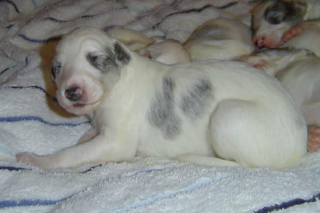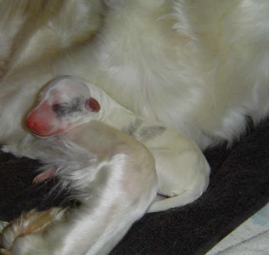 Puppies at 4 hours old![]() Dam:CH Avalyn Nakai KishkaKira is owned by Lynne Bennett & Nancy G. KatsarelasKira's Pedigree![]() Sire: CH Majenkir Regal By Design