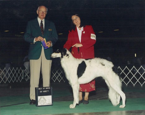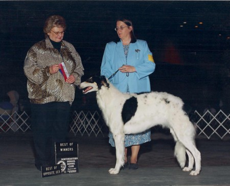 Faith pictured above 7/12/12, 5 days shy of her 11th Birthday. Photos by Stuart McGraw![]() ![]() Faith pictured above after going WB, BOW for her first major under Judge Mr. Frank Sabella at the Bucks County Kennel Club show 5/3/03. Faith took her second major 12/13/03, an MBC supported show under Judge Carol Spritzer. She now has 14 points with both majors. 4/10/04 Faith picks up 2 more point to finsh her chamionship!Now on to lure coursing. Faith's first weekend of lure coursing are 5/7/05 & 5/8/05. She comes home with 2 qualifying scores toward her SC, and a 4 point major toward her field champion and a BOB. Faith goes lure coursing again 9/17/05 & 9/18/05 and picks up two more qaulifying scores to finish her SC title. She places 5th place both days.